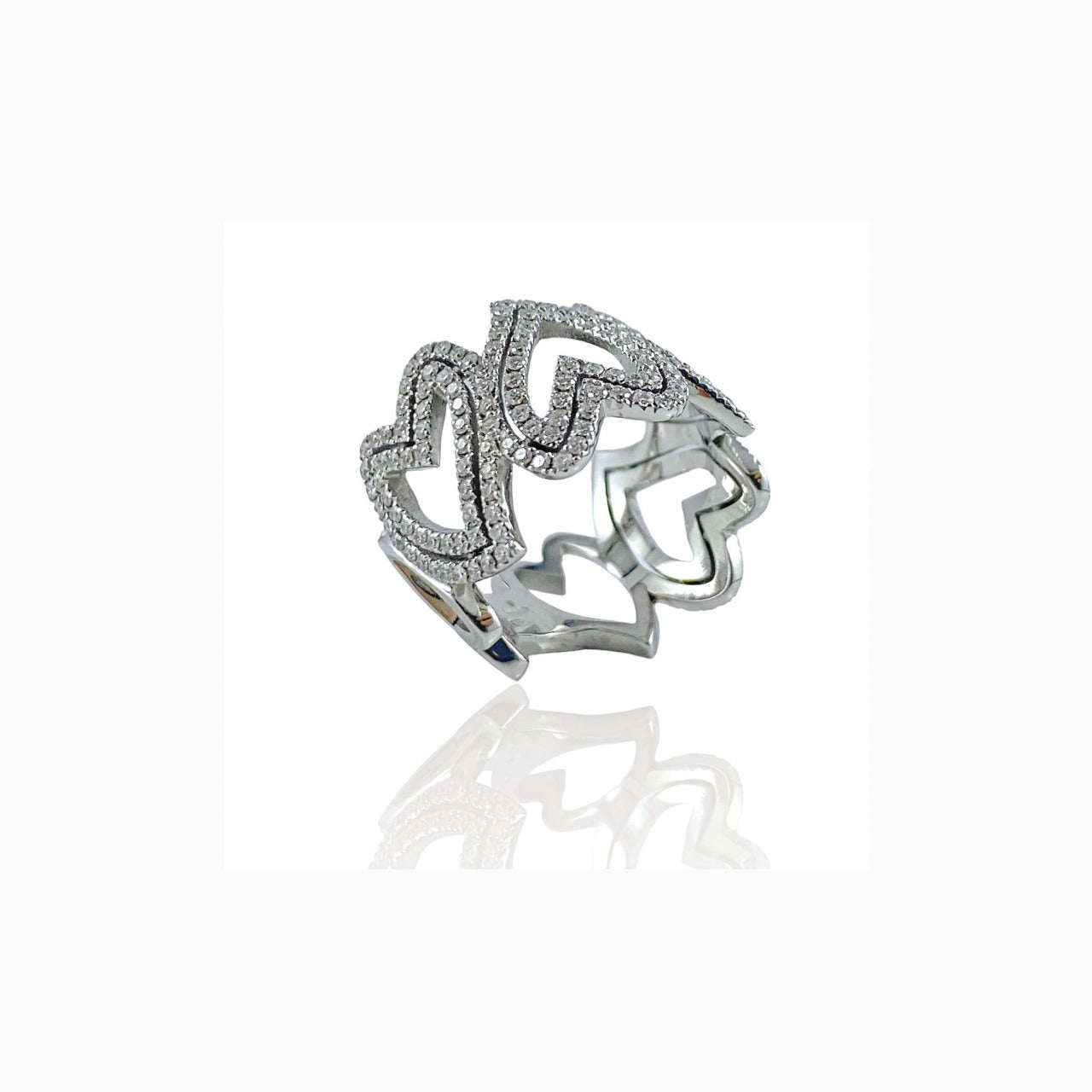 Anello realizzato in oro 18 kt con cuori di diamanti ct. 1,90 G/VS misura attuale 13 con possibilità di modifica. Made in Italy.