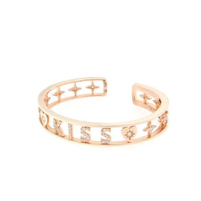 Bracciale semirigido kiss in argento rosa e zirconi bianchi taglia unica.