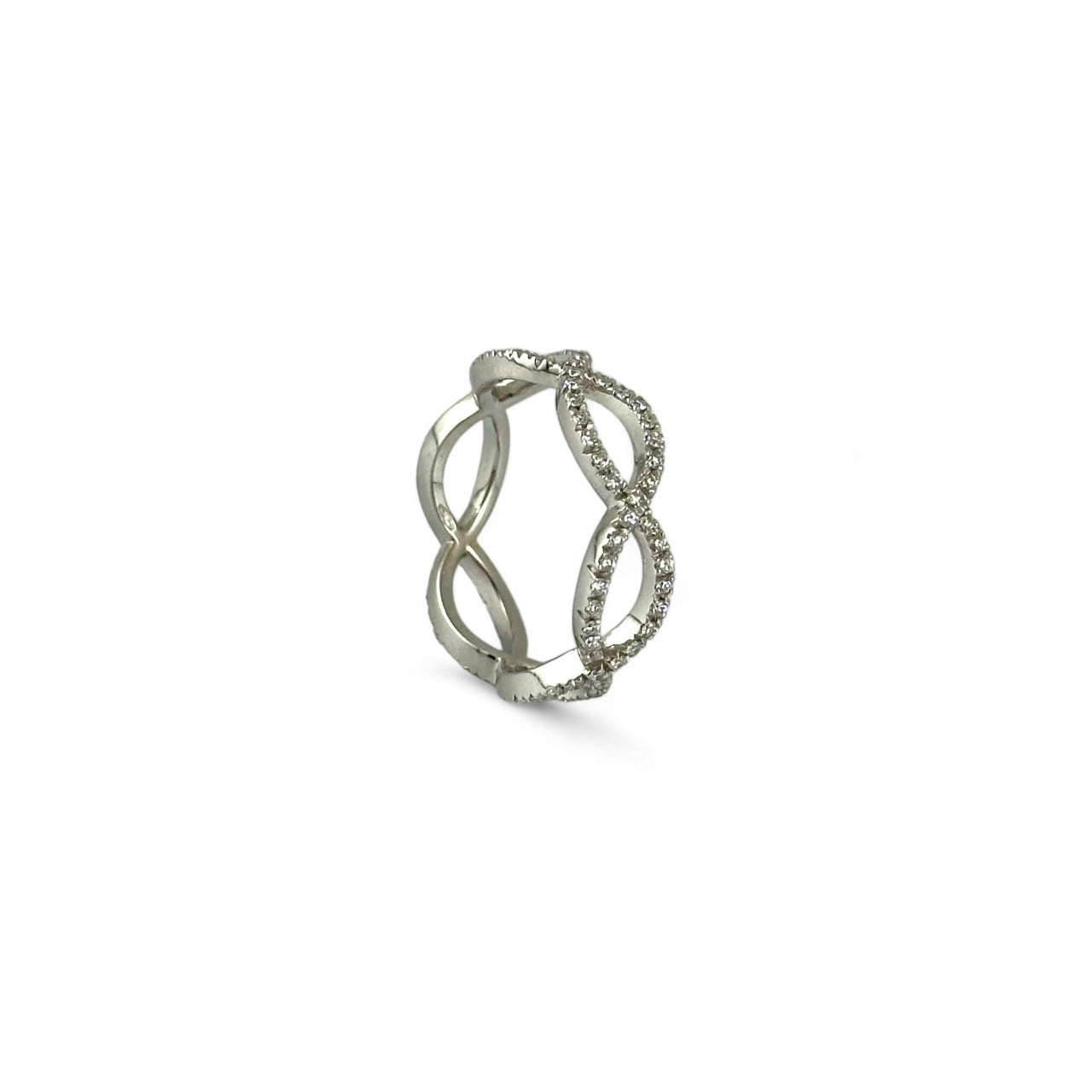 Anelli infinito realizzato in oro bianco 18 kt gr. 3,9 e brillanti ct. 0,44 G/VS. Misura 14.