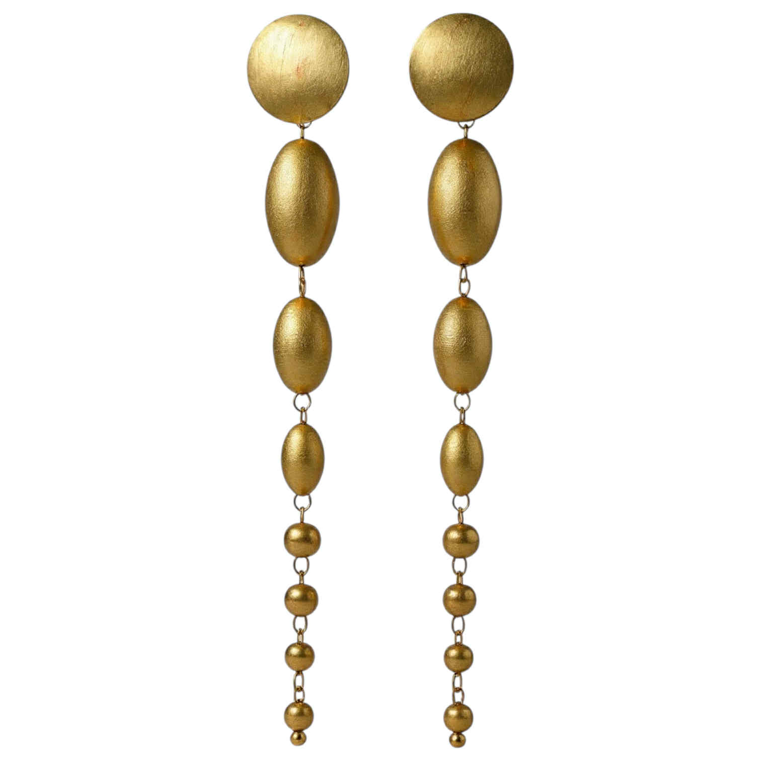 Orecchini pendenti con olive degradè in argento dorato satinato, attacco perno e farfallina, dimensione 10 cm.